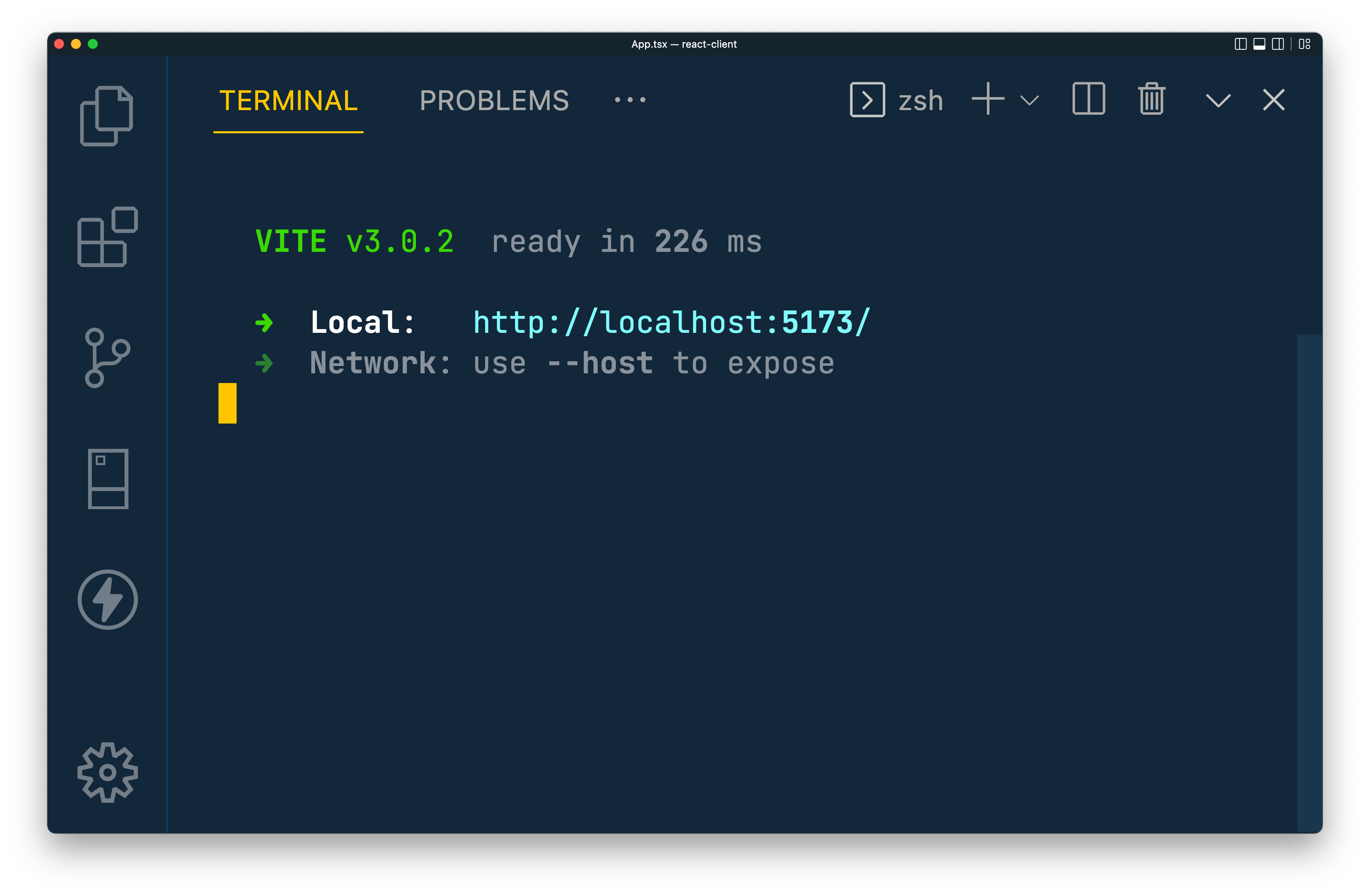Start a React application with Vite