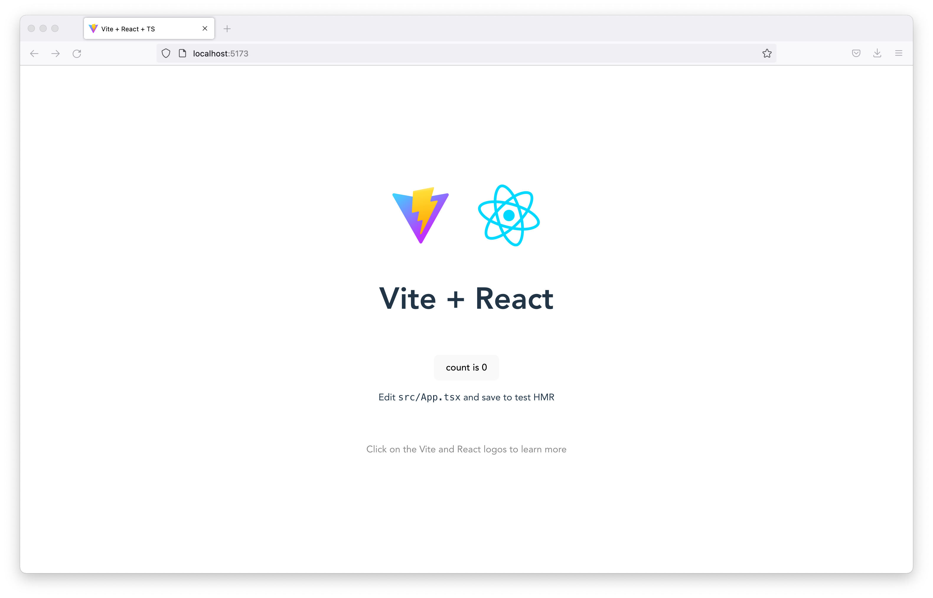 If you pop open the link from that output you will be presented with Vite's React and TypeScript template landing template page: